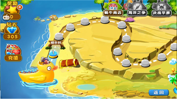 点击游戏图标,进入主界面点击开始游戏,即可进入人气爆棚的蜗牛战争。关卡界面左上方显示为金币和钻石,这里玩家你可以通过塔防来升级角色能力,解锁新塔防等等!