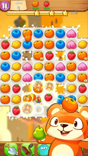 起点提供熊友果汁下载,这是一款休闲益智的消除小游戏。该游戏玩法非常简单,玩家只需要将三个或者三个以上相同颜色的水果组合在一起即可轻松消除,个数越多消除分数越高哦。