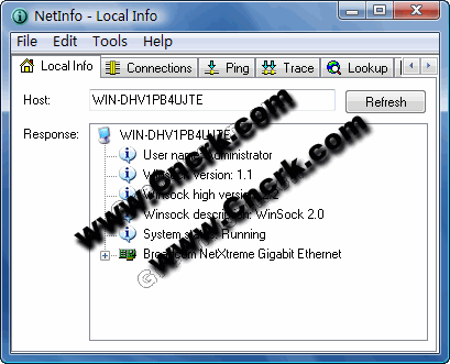 NetInfo V6.8 Build 329 英文绿色特别版 著名的网络工具箱 NetInfo,其功能相当完善,包括本地信息、连接信息、Ping 工具、追踪工具、HTML 工具、获取时间工具、时间工具、获取信息工具、在线人工具、引用工具、扫描器工具、服务项目工具,以及 IP 监视工具(IP Monitor)。可以利用这些工具查看远程主机的任何信息:包括全部用户信息、信息中心的信息、主机可连接性能情况、获取一个指定网站(或网页)的HTML文件资料、去远程主机的网关数量等。