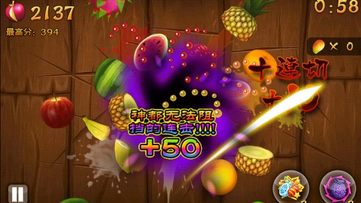 在第一代水果忍者的基础上,加入了大量创新的要素。玩法各异的关卡使得游戏不再单一,百玩不厌。 游戏整体节奏很流畅,并且新玩法层出不穷;同时教学引导简明全面,难度也循序渐进;画面轻松诙谐,音乐悦耳动听。属休闲游戏中的佳作,所有玩家都不应该错过。