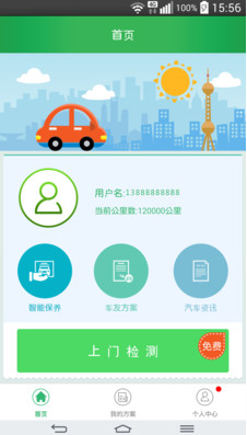 智能方案:系统会针对您爱车的实际情况出具最适合、最精准的汽车保养方案。免费检测:专业检测工程师免费上门给您的爱车检测并提供详尽保养方案。