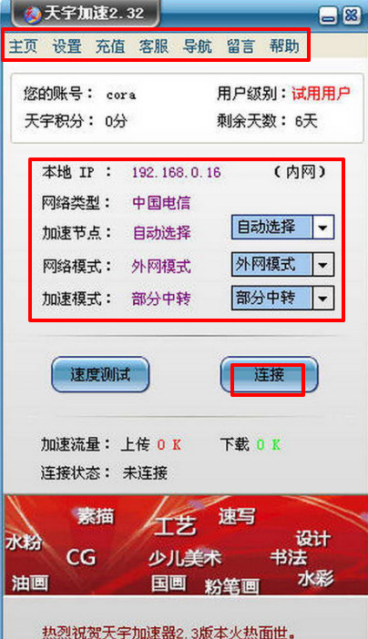 3、进入后开启加速即可;