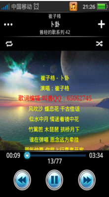 1、当音乐播放器在后台播放时,状态栏会以消息显示,音乐正在后台播放。2、增加了更多炫丽的背景图片并可以通过点击背景来切换图片。