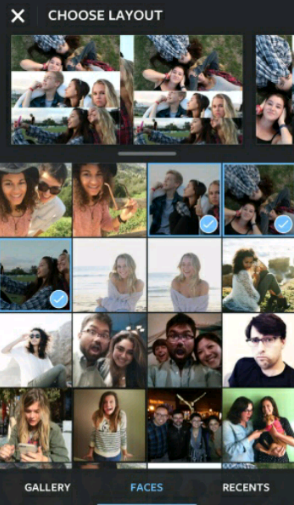 一次最多可将 9 张照片重新组合成有趣、个性化的布局。“人脸”选项卡能够快速识别出有人在内的照片。