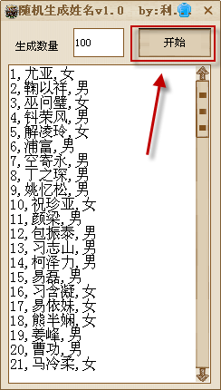 随机生成姓名软件选取了常见的姓氏和名字,通过随机组合的方式,为用户生存多个逼真的中文姓名名单,一般我们将生成后的姓名用于小说人物名称或自己的网络笔名!