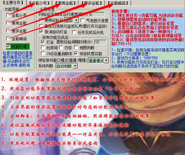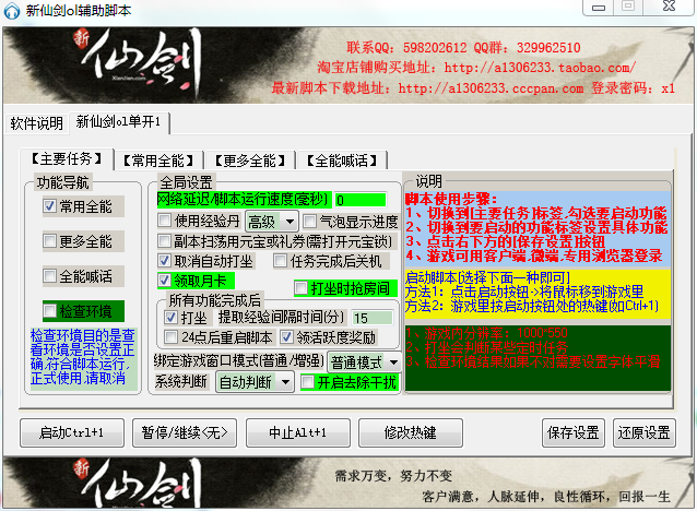 新仙剑OL辅助脚本是新仙剑游戏中的一款综合辅助工具。该工具拥有自动打坐、副本扫荡、领取月卡、打坐时间抢房等等主要功能,还拥有多种常用辅助功能,帮助玩家在游戏中可以更加享受。