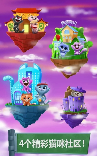 > 探索猫咪城市的4个社区——猫薄荷山、中国城、市中心和贫民区——每个社区都各自汇集了令人捧腹的可爱猫咪们。> 有史以来最惹人喜爱、最特别的猫咪们!快来齐集所有猫咪吧!