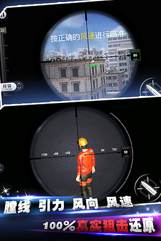 1.第一人称视角操作,屏气凝神、身临其境,告诉你如何当一个合格的狙击手!2.独创触摸移动&重力感应的双操作模式,随时随地、边走边玩,战斗随时开启!