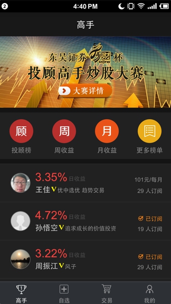 3. 订阅心仪高手,高手的持仓和投资策略一览无余。