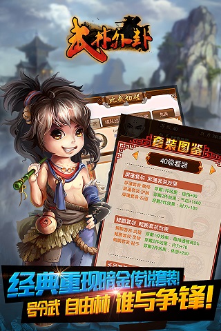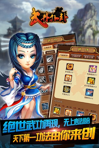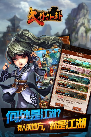 武林外卦是一款纯中国风的2D武侠手机网游!大到每一张地图的名称,小到每个副本BOSS简单的一句对白我们都仔细考究!只为给玩家还原一个百分百的武侠世界!去圆每个玩家心中的那份武侠梦!精心打造,百分百还原武侠名著,使用中国风的美术风格,只为给你一个百分百的武侠世界,只为去圆你少年时的武侠梦!八大门派:武功鼻祖的少林、仙风道骨的武当、奇经异骨的丐帮、面柔心善的恒山、凶狠阴毒的星辰、剑法无双的华山、神秘莫测的古墓,敢爱敢恨的峨眉~不同的门派,不同的开始,唯一不变就是那颗追求极致的心!