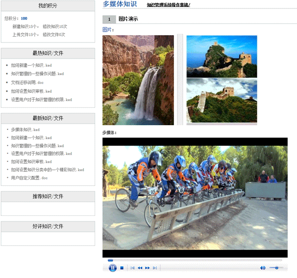 知识中可以实现图形图像的集成和预览、支持媒体文件的集成和在线浏览,支持Flash文件的集成和浏览。