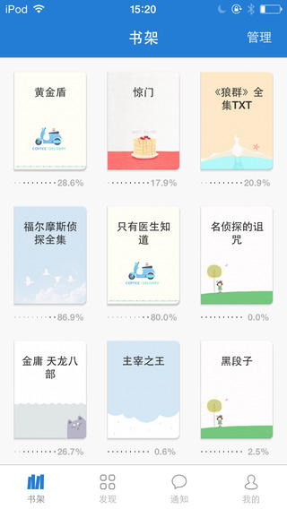 8.个性化阅读辅助功能:两种精美的书架呈现模式;下载管理功能可以随时查看下载进度;在书签管理中可查看所添加的书签;统计您的阅读成果。