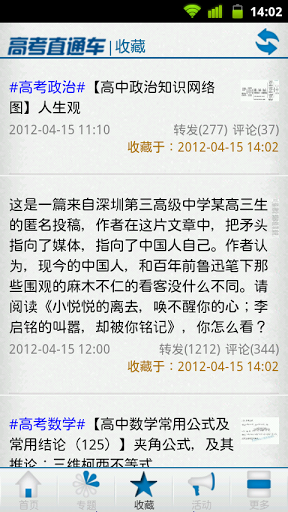 高考直通车客户端为您提供最新的高考资讯、考试要点、考试技巧、高考互助等相关内容。1、最新高考资讯,每日更新,不再错过;