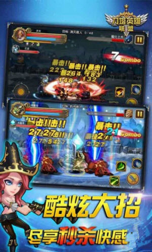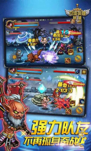 游戏采用了横版2.5D战斗模式,有些类似dnf的感觉,玩家们将控制自己的英雄进入战场,以华丽的招式消灭遇到的敌人。游戏画面风格与PC端原作非常类似,包括人物的形象和招式动作都完美呈现了原版风格,让我等撸迷们倍感熟悉。游戏画面质量相比PC端还是有所差距的,颗粒感比较明显,不过还好各种英雄的技能异常华丽,倒也能分散玩家的注意力了。