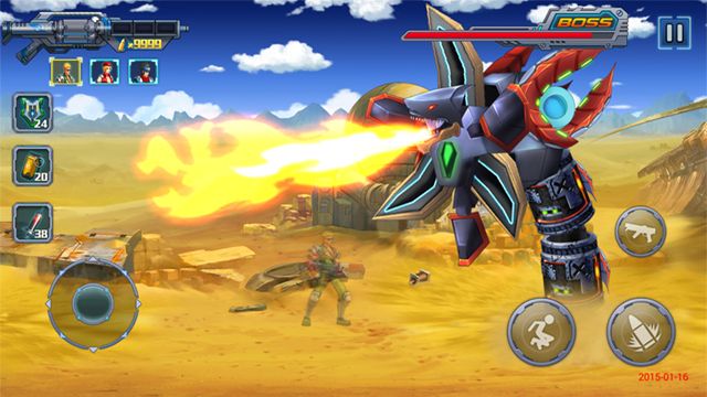 最新世代的魂斗罗!核心玩法不变,其余大幅加强,值得一玩!以硬派动作射击游戏为制作理念,创新大量养成元素,多重关卡,随机任务,让玩家一爽到底。游戏的美术使用逼真的写实场景风格加上日式卡通风格的人物表现,加上逼真绚丽的粒子特效,巨大威武的多形态boss,沙漠、雨林、遗迹、洞穴等复杂多变的地形给玩家带来一个全新的视觉盛宴。