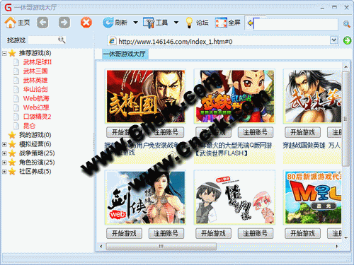 一休哥网页游戏大厅 V1.03 Build 9.401 简体中文绿色免费版 一休哥网页游戏大厅,上万网络游戏即点即玩,收录了目前所有的主流网页游戏并且类型分类,用户无需记录网址,点击即可随时玩游戏。游戏大厅根据用户的游戏习惯设计出简单易于操作的界面,没一个操作都很清晰,用户易于上手且爱不释手。