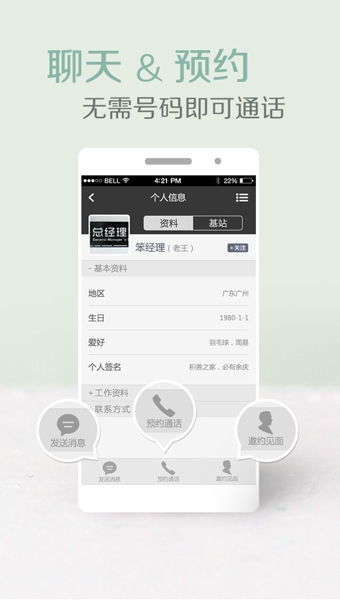 最体贴:预约通话,预约见面,无需号码即可通话,办公小帮手就在这里!