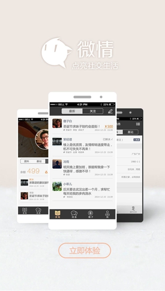 在纷繁的世界里,让漂泊流浪的你,偷得浮生半日闲,谈笑有鸿儒相伴,忧愁有知己相依。微情,点亮你的社交生活。下载微情的六大理由: