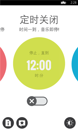- 三种关闭音乐的模式。(快速关闭、定时关闭、倒数关闭)