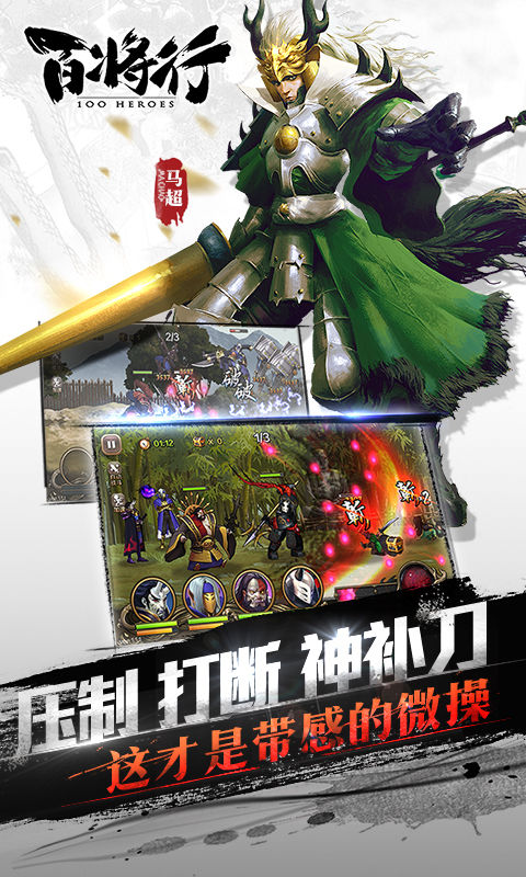 百将行建构了一个架空的奇幻三国世界观,在高度还原三国经典人物和故事同时,加入创新魔幻元素,重现战国无双经典。在卡牌中融入动作游戏的浮空、追击、破斩等元素,打击感体验爆棚。游戏增设了“补刀”和主角怒气大招元素,加上特色连招和打断技巧,大大丰富了战斗中的策略操作和搭配技巧。【游戏特色】