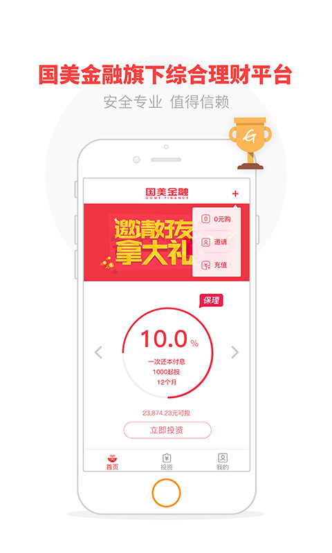 美易理财app是国美金融的综合性理财服务平台,和其他理财不同的是,美易理财的“0元购”产品完全不同于人们传统的消费方式和理念,用户不仅可免费获得心仪商品,还能再享银行同期收益,使用户的品质生活与财富增值的同步实现。【软件特点】