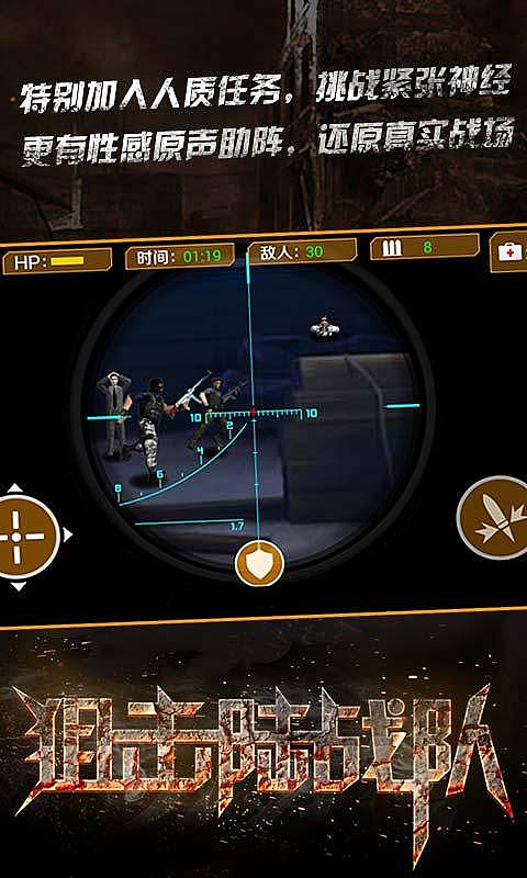 狙击陆战队一款刺激的枪战游戏,纽约,埃及,巴西,迪拜,真实城市场景,众多的难度关卡、丰富的武器装备、爽快的击杀快感,一枪爆头的成就感, 每日丰富任务,抽奖活动,在线和众多狙击高手竞技,快加入拯救世界的行列吧!【游戏特点】