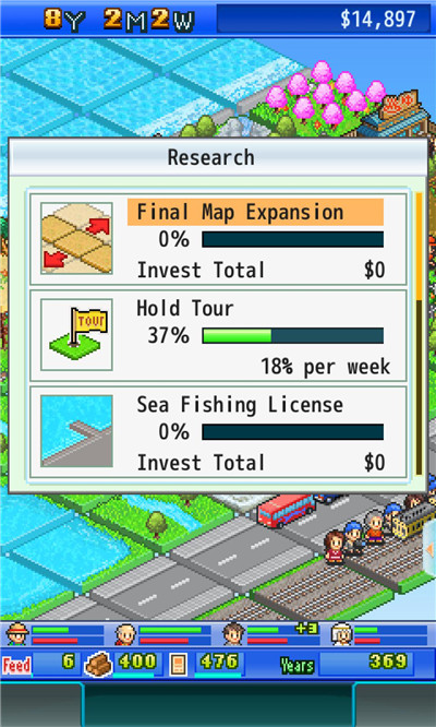 鱼潭公园是Kairosoft Co.,Ltd开发的一款经营模拟类游戏。用多种服务,如旅馆,旅游,以及更多的家具经营具有的田园般的旅游天堂!进入全国自然景点排名!混合搭配你的林地仙境,炮制令人兴奋的户外景点,吸引观光客。哪些组合可以做到?激发户外活动的精神并实验一下吧!任何池塘或河流也都可兼作水生生物栖息地 - 在全新的钓鱼模式下您可以享受之后的钓鱼观光!【游戏特点】