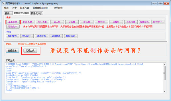 网页菜鸟助手下载 v1.2 绿色免费版 网页菜鸟助手是一款适合菜鸟使用的意见傻瓜式网页制作工具,这款软件非常方便好用,它可以帮你在几分钟之内快速创建并上传你的网页,而你就算是小白也无需害怕,它不需要你了解任何关于 HTML 的知识。你只需要拖曳对象到页面中并随意的调整它们的位置即可。欢迎下载使用!