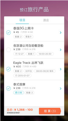 还记得出去玩一次,要去N个网站下N个订单的痛苦吗?这次不必了。加入到计划中的各类活动、交通、住宿等旅行产品,您都可以在我们这儿直接预订。我们挑选了当地靠谱的供应商,绝对的高性价比。