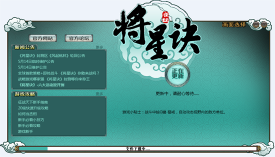 《将星诀》是一款三国背景的微端页游,玩家可代表魏,蜀,吴一方势力攻城掠地征战天下,游戏战场采用即时战略(RTS)的战斗方式,让玩家身临其境体验古代战场厮杀的乐趣。喜欢这款游戏的玩家赶快来使用将星诀登陆器吧。【将星诀特点】