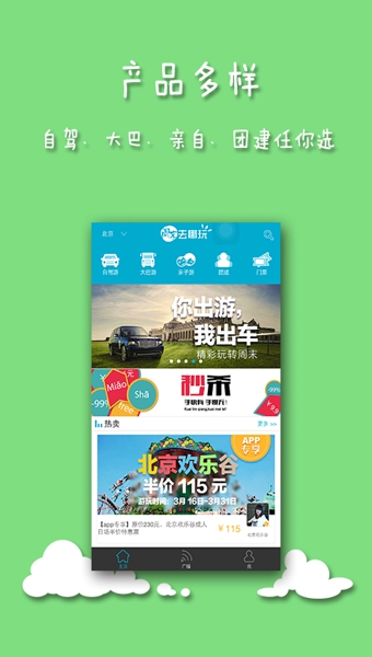 周末去哪玩旅游产品覆盖:大巴游,自驾游,亲子游,徒步游,社区直通车,团建,景点门票,多种多样随便你玩。多条路线,多重产品让你想玩就玩,想去就去。