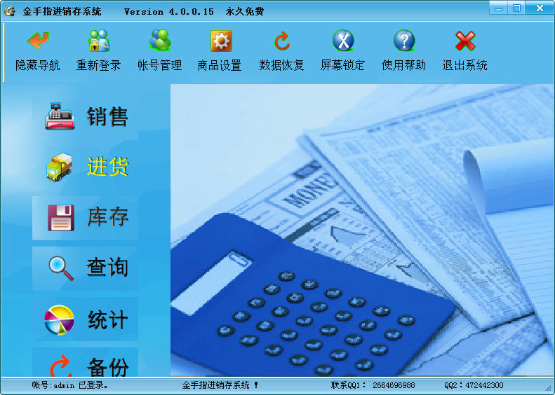 帐号管理:增加、删除、修改帐号权限。商品设置:维护商品类别,添加、删除商品和销售价格。