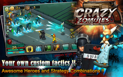 疯狂的僵尸HD是一款休闲的策略塔防手游。该游戏集塔防、模拟经营、养成游戏元素为一体,运用了Q版画风,带领玩家展开一场别开生动的战斗,将那些疯狂的僵尸尽情消灭。