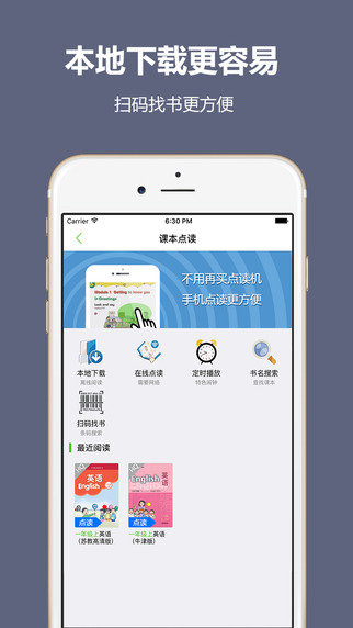 特色2:手机变身点读机:小学英语课本免费在线(支持离线下载)点读,即点即读,中文翻译,小学生课外英语复习绝佳利器。