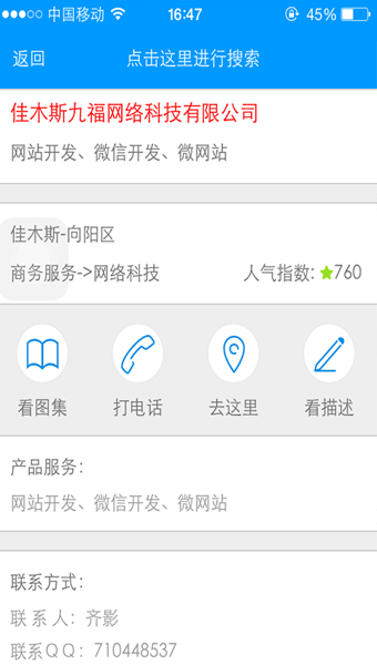 1、在快节奏的生活环境下,随时随地获取生活服务信息的需求也在日益增加;2、跟前儿致力于做最全的本地生活化搜索APP,内容涵盖了本地所有行业,可以满足用户的消费及获取信息的需求;