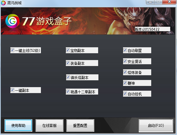 77混沌战域盒子下载 1.0 绿色版 77混沌战域盒子是混沌战域游戏中的一款辅助工具。该工具可以轻松帮助玩家一键升级主线52级,并有超多游戏副本天天刷,自动挂机等游戏功能,有需要的玩家可千万不要错过了。