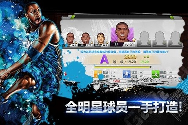 同时玩家还可以在游戏内部通过职业生涯联赛、训练中心、竞技大厅等多样比赛获得许多顶尖的NBA、CBA球员。例如:姚明、林书豪、科比、霍华德、艾弗森、诺维茨基、奥尼尔、乔丹、韦德、慈世平等数百个球员,还有很多退役老将也会参与其中。玩家可以通过自己的努力打造一支专属于自己的全明星梦之队。