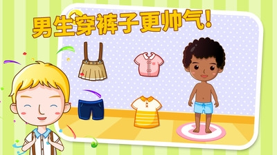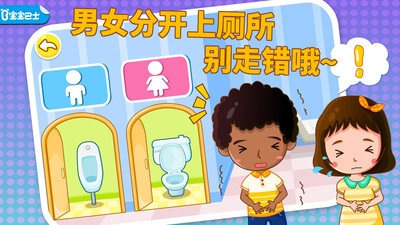 *配音+动画,视听结合,让宝宝感受男女差异;*换装+上厕所两大情景,让孩子上对厕所、穿对衣服;
