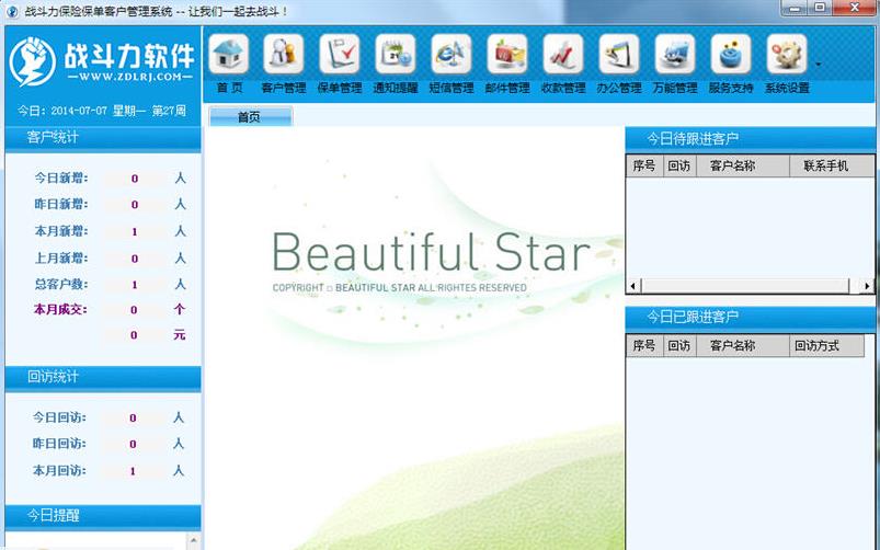 战斗力保险保单客户管理系统是一款免费绿色的保险单客户管理软件。该软件界面清爽简单,功能完善,拥有客户管理、保单管理、通知提醒、收款管理等等功能,为用户提供更好的保险保单管理。