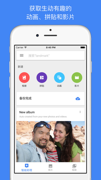 ? 让照片更加生动:自动创建蒙太奇影片、互动故事、拼贴和动画等。