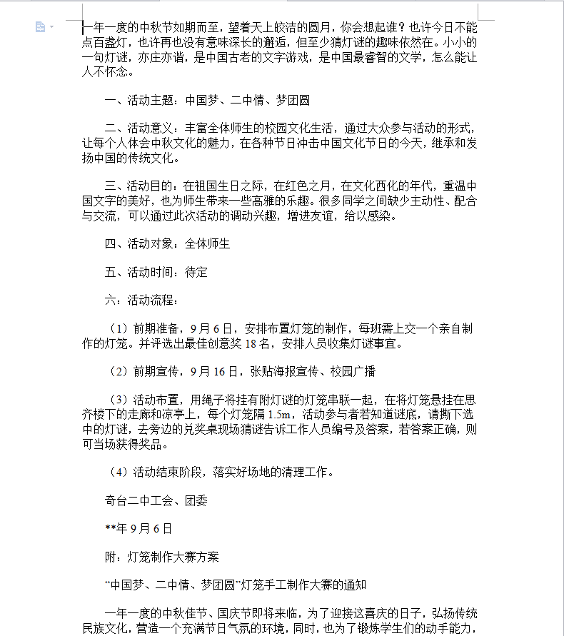 一、活动目的:1、了解我国元宵节挂花灯,猜灯谜等风俗习惯;