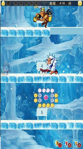 游戏中,主角是一个有着多种造型的可爱企鹅,跑起来十分搞笑有趣,当然怪物、各种机关也得小心向下滑动屏幕可以控制企鹅破冰,向上滑动屏幕可以进行跳跃