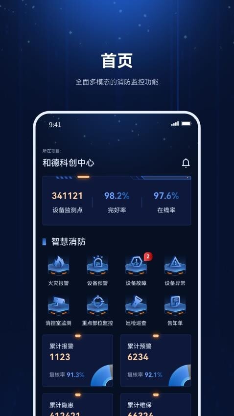 2. 一进入应用的首页,便能看到众多消防功能,同时还能查看大量的数据信息。