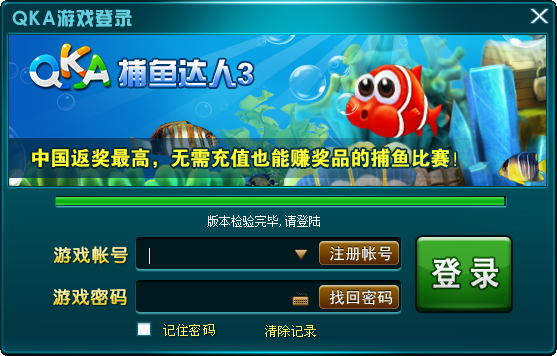 1、双击电脑桌面上的QKA游戏图标,弹出登录框。2、在弹出的登录框内输入您的帐号和密码即可登录。