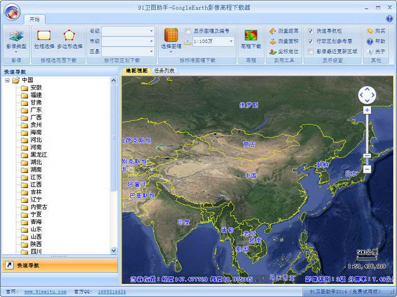 全球卫星影像下载区别于市面上众多基于Google Map的下载工具,本软件通过对Google Earth数据传输协议的完全解译,直接从Google Earth服务端下载数据,所下载的影像无Google水印标识。
