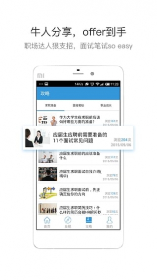 2.增加求职攻略栏,为大学生找工作提供宝典;