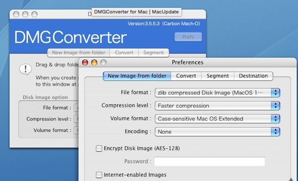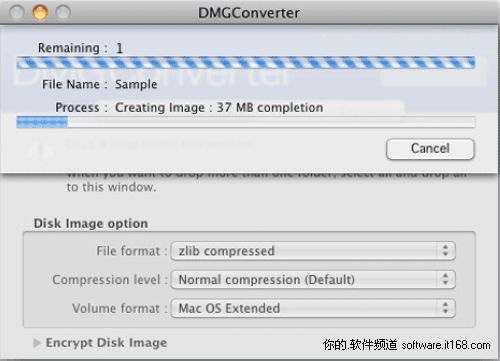 3、在镜像的编码中支援GZIP(速度快)和BZIP2压缩(质量高).DMGConverter是自由软体,可免费发放及传播使用(UB).相对于iDmg,DMGConverter更显功能强大.但在UI方面略逊色于前者。