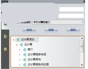 添加到标题的超链接时,不需要输入地址,而是需要从下面的标题树中选择。如果标题树没有反映最新的标题,点击“刷新”按钮。其他同上,最后点击“添加”按钮。