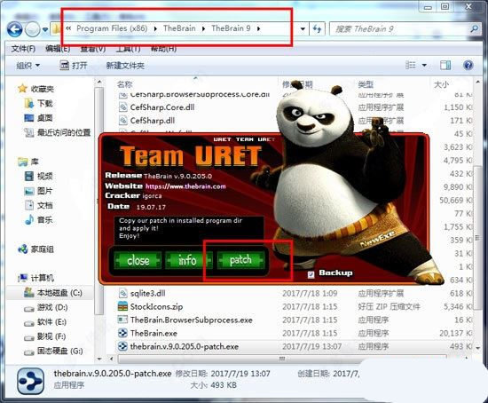 3、将TheBrain9破解工具“thebrain.v.9.0.205.0-patch.exe”复制到安装目录下运行,然后点击“Patch”即可,默认安装目录为C:\Program Files (x86)\TheBrain\TheBrain 9