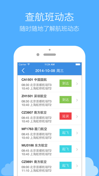 按航班号或起降地搜索,个性化定制你想关注的航班,随时了解航班行程